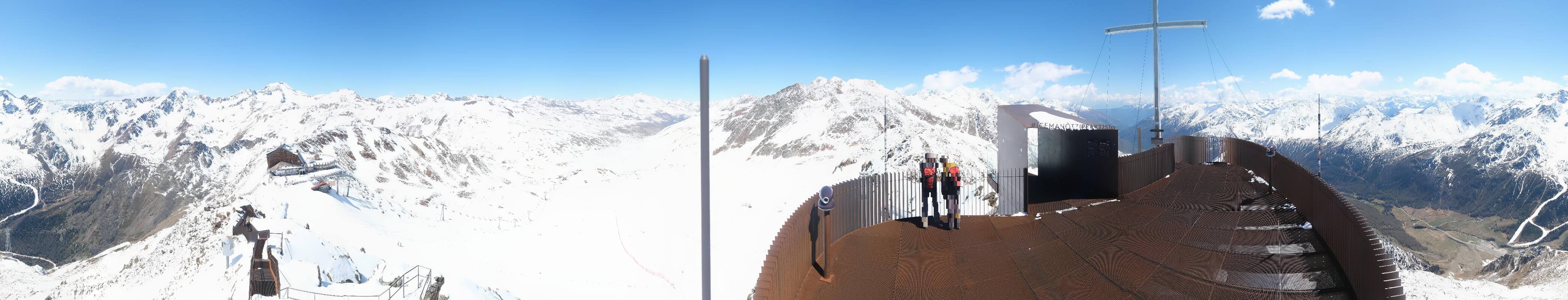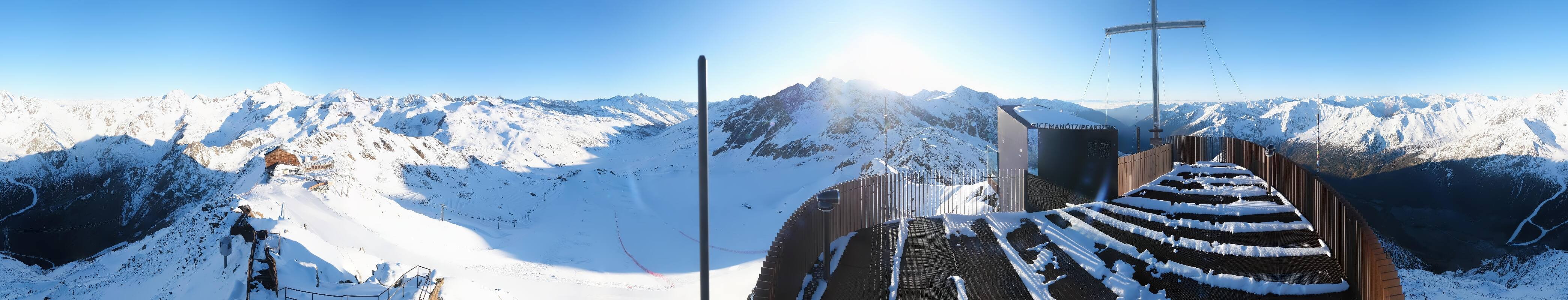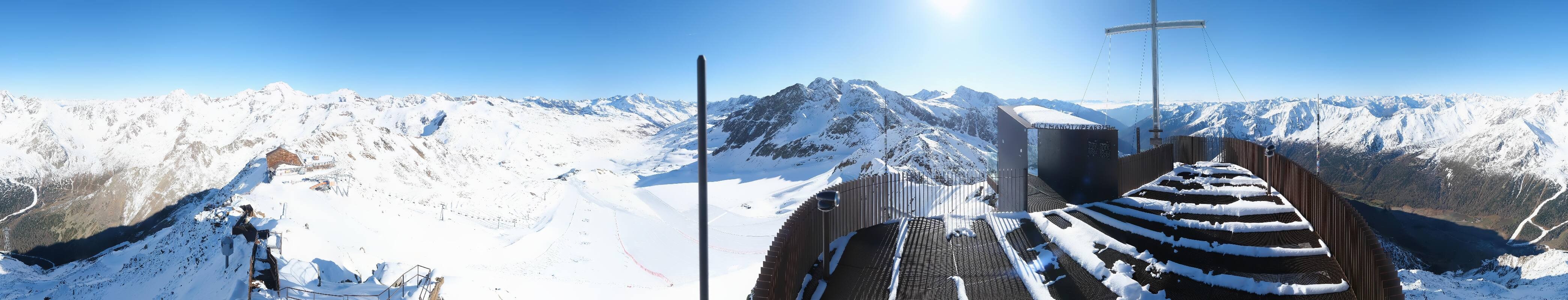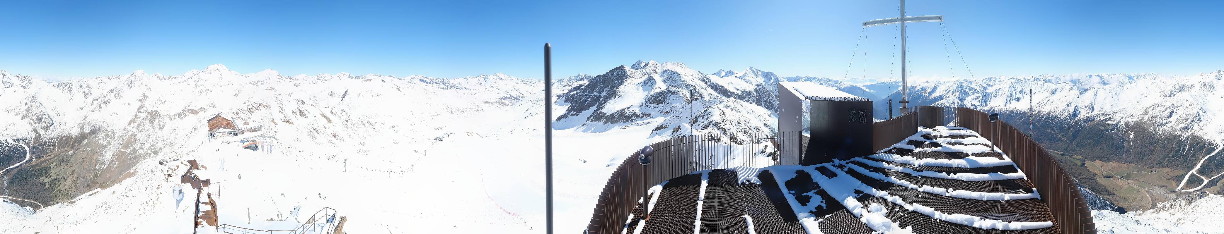 The webcam is located at the viewing platform Iceman Ötzi Peak on the Grawand peak and offers a great view of the mountain station of the Grawand chairlift and the slopes on the Val Senales Glacier.