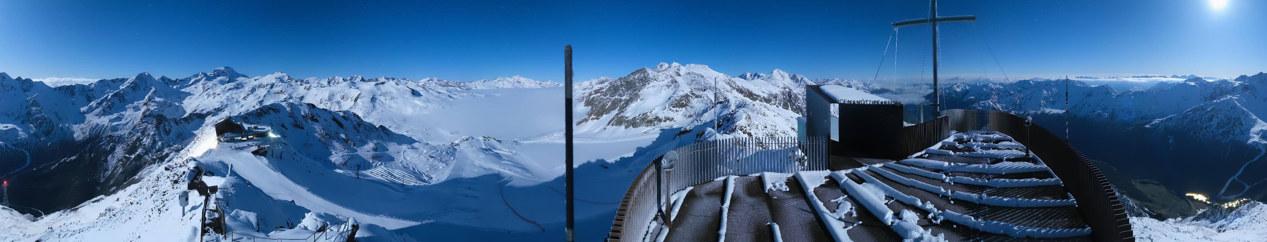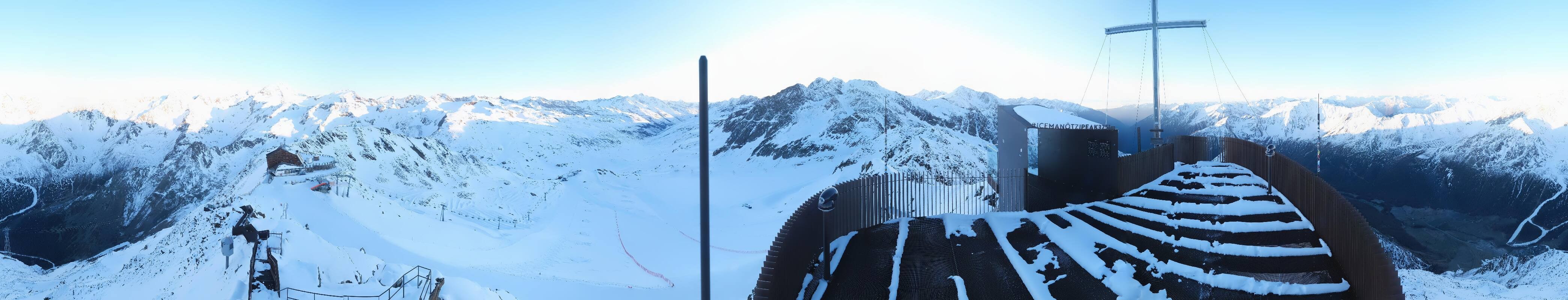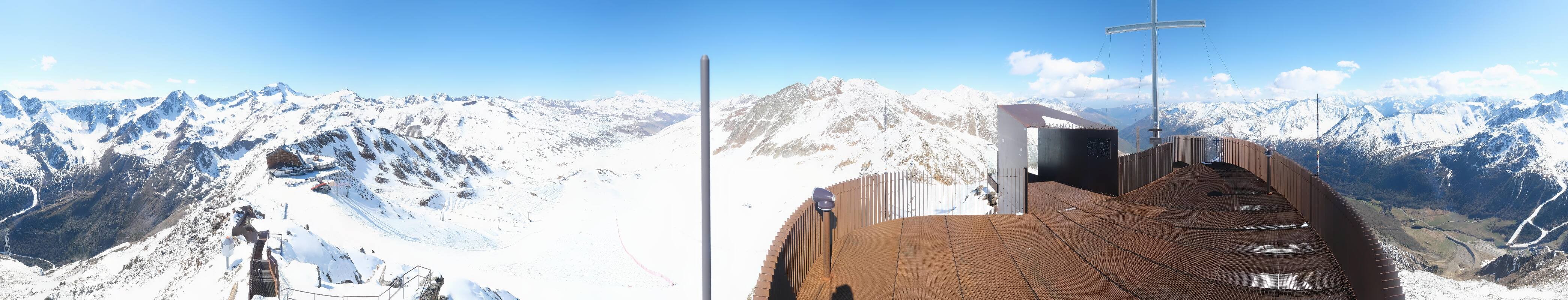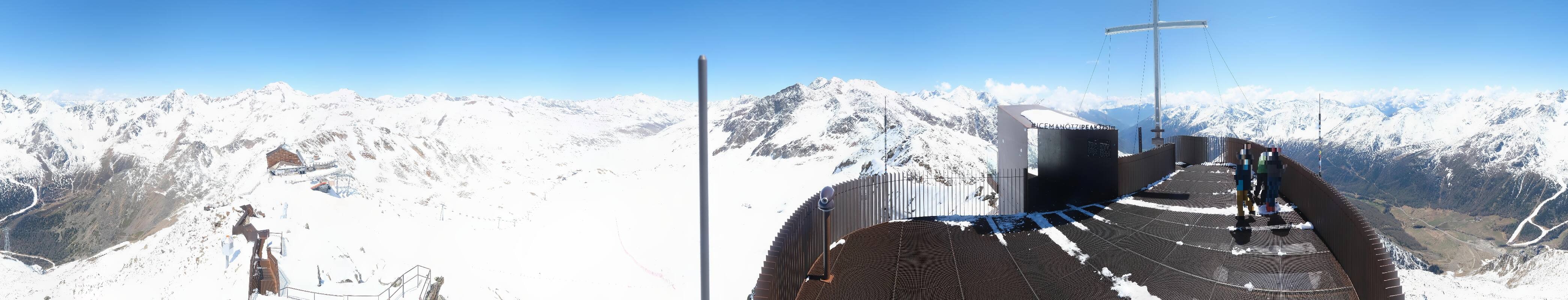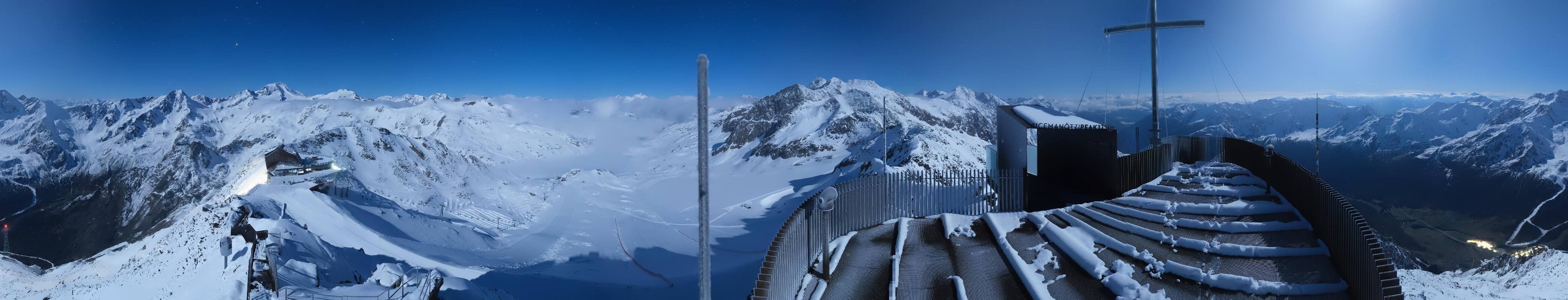The webcam is located at the viewing platform Iceman Ötzi Peak on the Grawand peak and offers a great view of the mountain station of the Grawand chairlift and the slopes on the Val Senales Glacier.