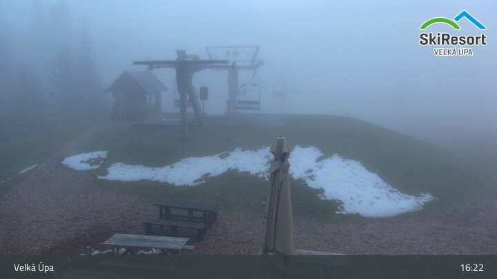 Here you can enjoy the view from the top station in Velká Úpa over the slopes of the Czeck ski resort.