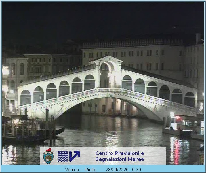 Archived webcam image showing Venice: Rialto Bridge on 28 Apr 2026 at 00:09 23:00