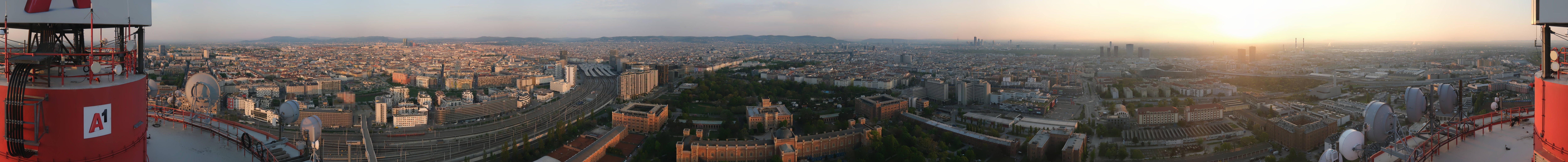 The webcam is located at the A1-Tower in Vienna and shows the central station and the Museum of Military History.
