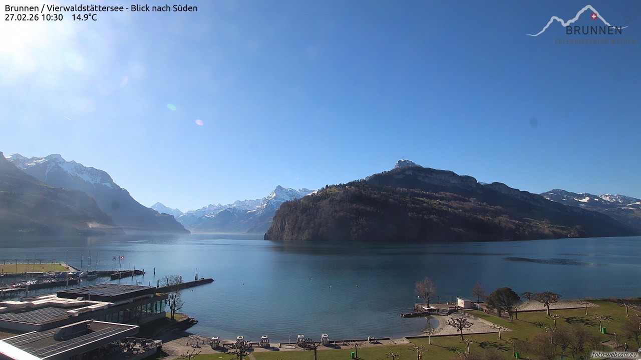 Enjoy the view from Brunnen at lake Vierwaldstättersee to the south.