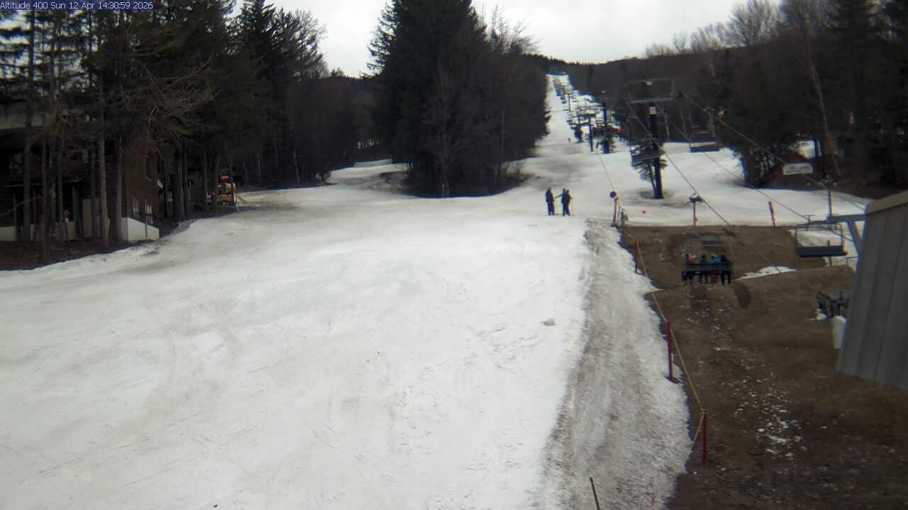Archived webcam image showing Mont Sutton: base area on 12 Apr 2026 at 12:08 05:00