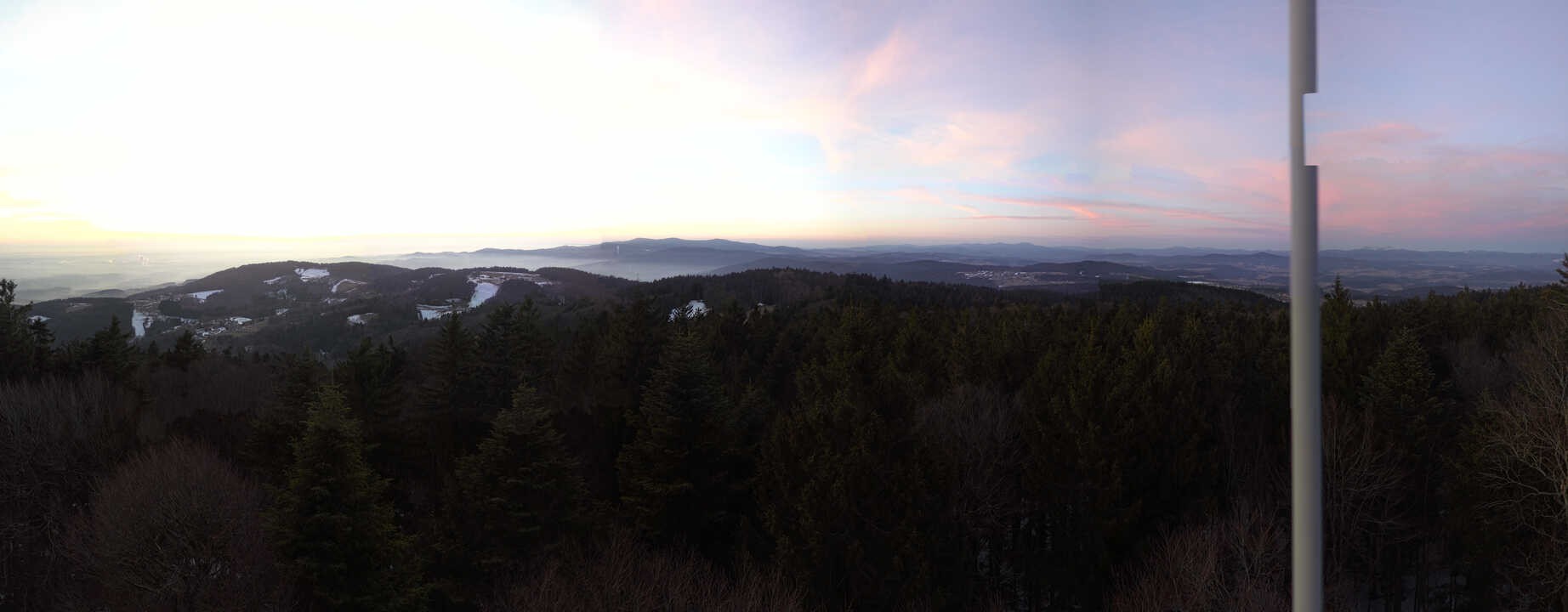 Archiviertes Webcam Bild: Brotjacklriegel - Panoramablick vom Aussichtsturm am 26 Feb 2026 um 18:25 Uhr Latest