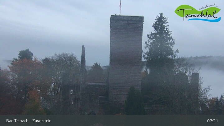 This webcam is located in Bad Teinach-Zavelstein. It shows the town as well as the castle ruins of Zavelstein.