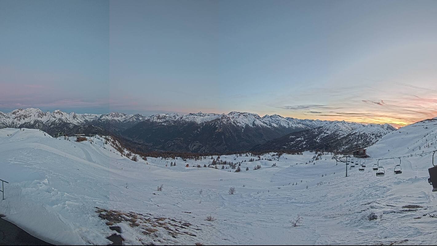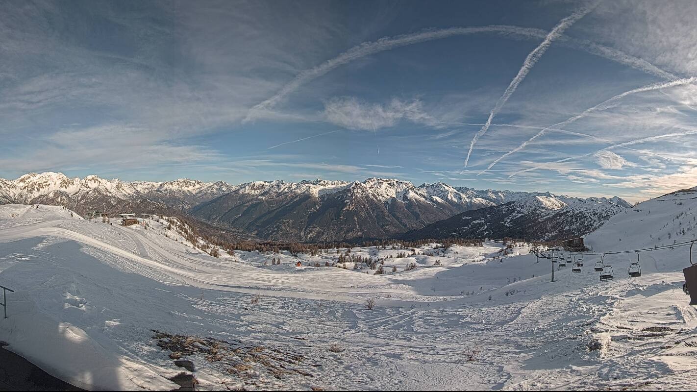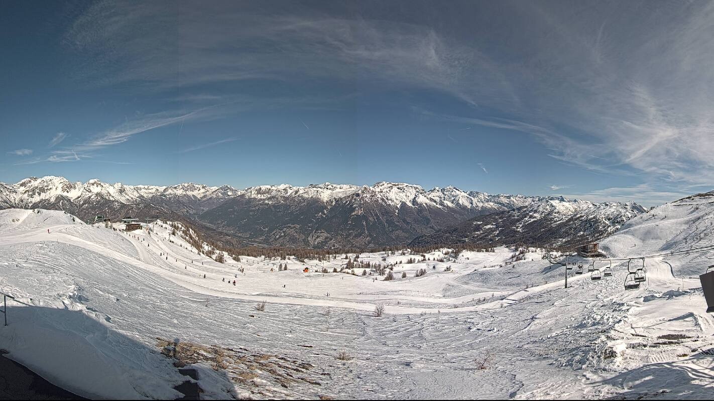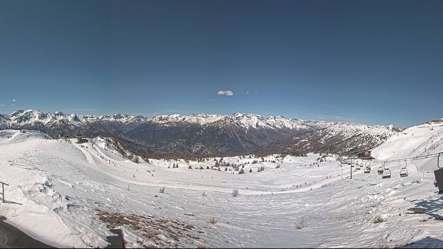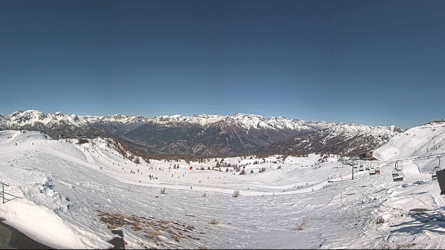 The webcam offers the view from Monte Triplex towards popular winter sport resort Saute d'Oulx in italian region Piemont.
