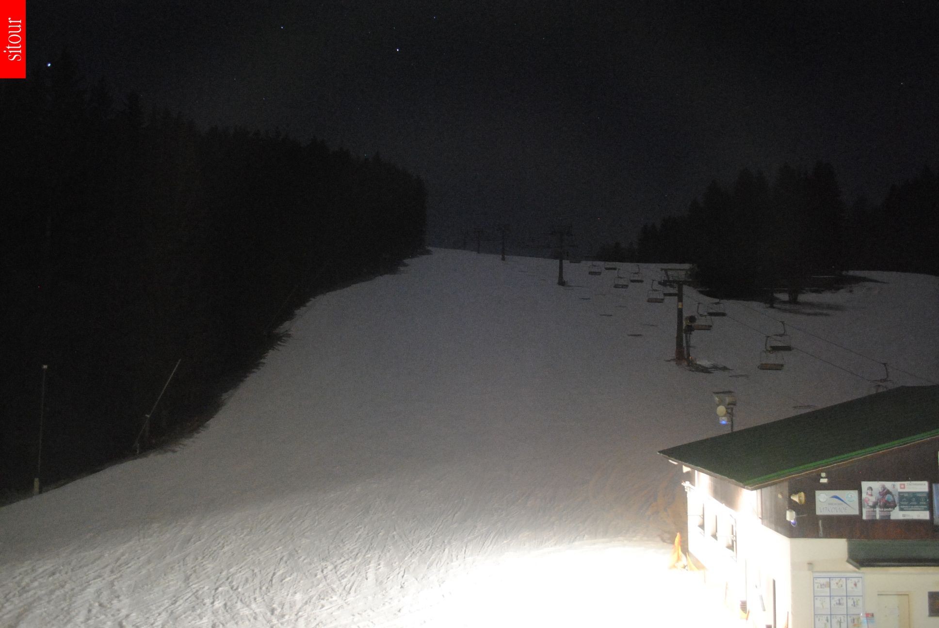 Located at the base station of the chair lift Prezidentský expres the webcam is looking towards the slopes Šárky Záhrobské, Václav and Gizela at the ski area Vítkovice Aldrov.
