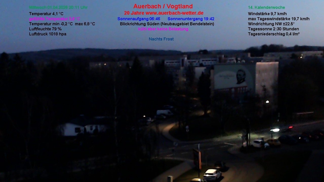 The webcam is located in Auerbach. It's a town in the Vogtlandkreis, Saxony, Germany.