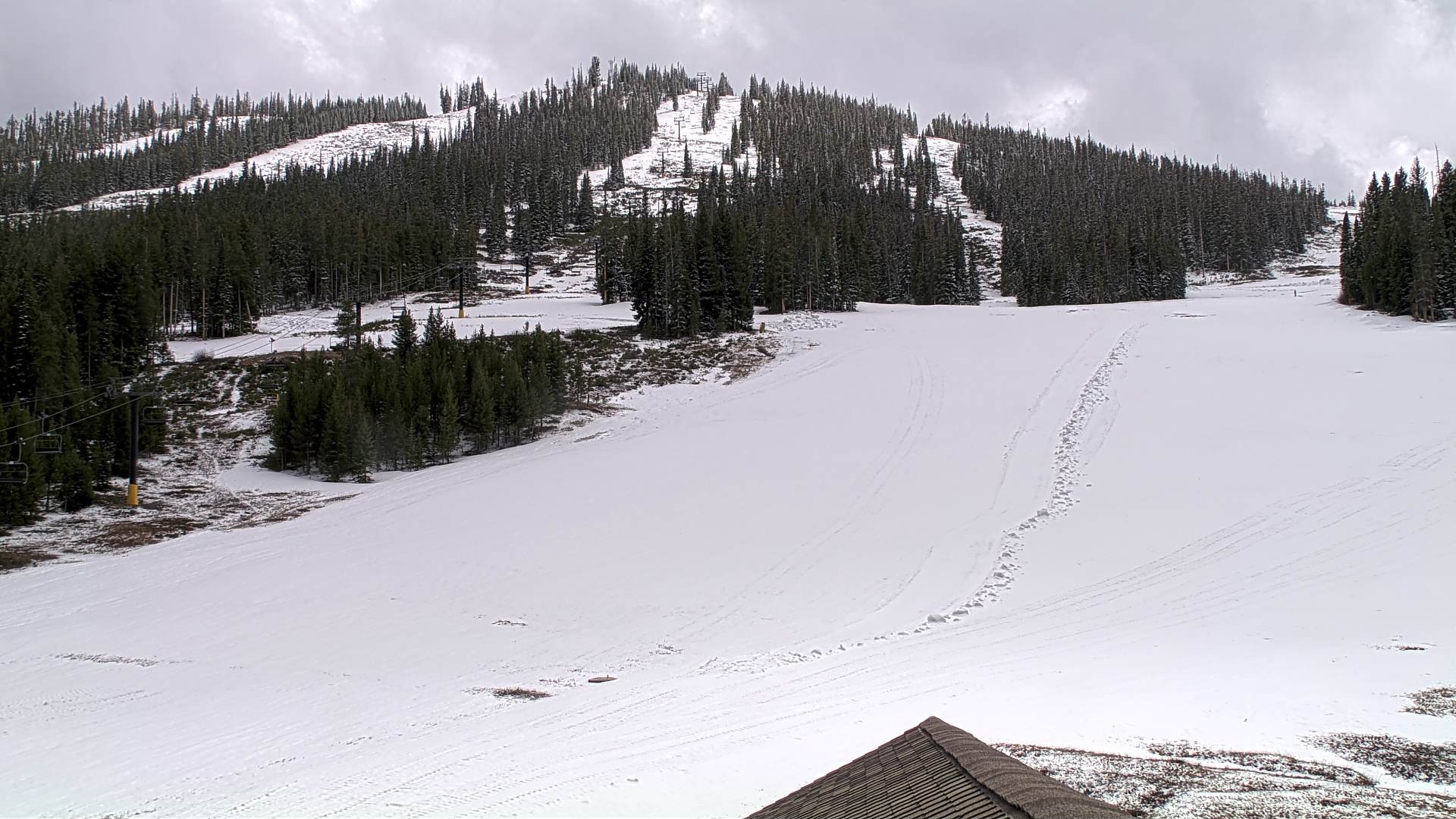 Archived webcam image showing Winter Park Eskimo Chairlift and Snoasis Restaurant on 27 Apr 2026 at 22:34 Latest