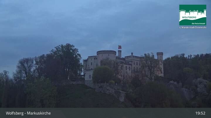 Located at church Markuskirche, the webcam provides the view towards town Wolfsberg in Carinthia, Austria. One can spot the old town and the castle Wolfsberg.