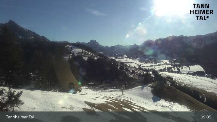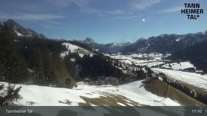 This webcam is located on Upper Halde in Zöblen and looks upon the surrounding Tannheim Valley.